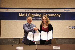 한국의료기기산업협회(회장 김영민)는 지난 12일 인천 인스파이어 호텔에서 캐나다의료기기산업협회(Medtech Canada, 회장 니콜 드코트(Nicole DeKort))와 업무협약(MOU)을 체결했다. 이번 협약은 식품의약품안전처·세계보건기구(WHO) 주최 ‘국제 인공지능 의료제품 규제 심포지엄(AIRIS 2025)’을 계기로 추진됐다.이번 협약은 한국과 캐나다 간 의료기기 시장 정보 교류를 활성화하고 상호 무역을 촉진하기 위해 마련됐다. 양 단체 회원사에 대한 지원을 강화하고 공동 사업 발굴을 통해 의료기기·디지털헬스 분야 글로벌 협력을 확대하는 것을 목표로 한다. 체결식에는 한국의료기기산업협회에서 김영민 협회장, 김명정 상근부회장, 탕킷싱 국제교류위원장(협회 부회장·한국로슈진단 대표), 김경남 국제교류위