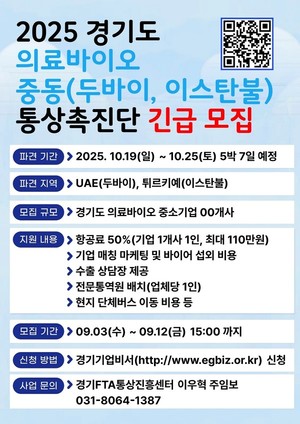 KOTRA와 한국의료기기산업협회에서는 내년 4월 9일(목) ~ 12일(일) 중국 상하이에서 개최되는 ‘2026 중국 상하이 의료기기 전시회 (CMEF)’ 한국관 참가기업을 모집합니다. 관심 있는 기업들의 많은 참여 바랍니다.○ 행사일자 : 2026. 4. 9.(목) ~ 12.(일)○ 행사장소 : Shenzhen Convention & Exhibition Center○ 모집규모 : 9개사 내외○ 신청기간 : 2025. 11. 11.(화) ~ 28.(금) 18:00○ 신청방법 : 첨부파일 참조자세한 사항은 첨부된 모집 공고문과 협회 홈페이지 공지사항(바로가기)을 참고해 주시기 바랍니다.