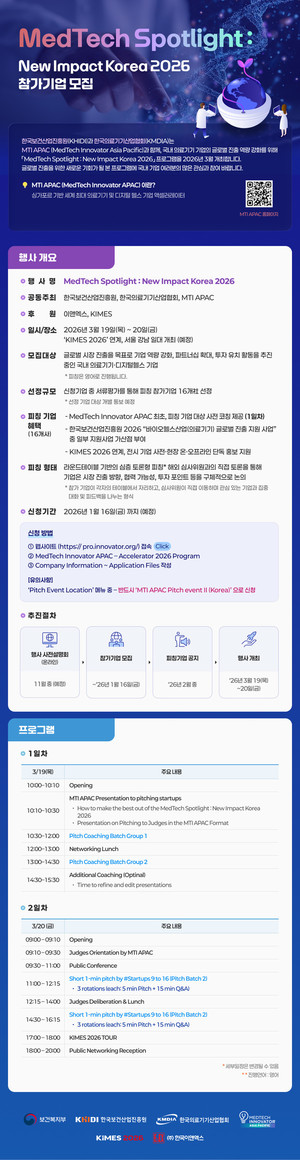 한국의료기기산업협회와 한국디자인진흥원에서는 디자인과 기술 중심 산업군 간의 실질적인 협력 기획 모색을 위한 매칭 및 협업 사업인 ‘디자인기업-기술기업 밋업(Meet-up)’을 개최합니다. 이번 프로그램을 통해 신규 비즈니스 기회, 네트워킹 및 산업 생태계 확장, 정부 지원 사업 연계 기회 등이 제공되오니, 관계자 분들의 많은 관심과 참여 바랍니다.○ 일시 : 2025.9.24.(수) 또는 9.26.(금) 14:00~16:30○ 장소 : 코리아디자인센터 6층 컨벤션홀 (경기 성남시 분당구 양현로 322)○ 신청기한 : 2025.9.12.(금)까지○ 신청방법 : 이메일(jyw0105@kmdia.or.kr) 제출○ 문의 : 한국의료기기산업협회 산업육성팀(070-7725-0251, jyw0105@kmdia.or.k