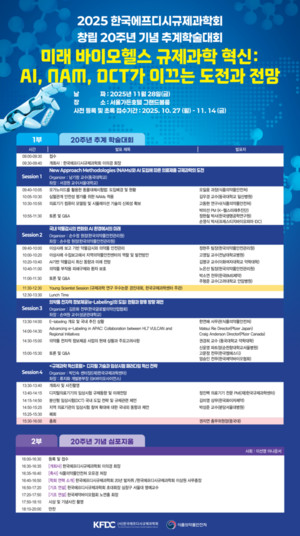 한국에프디시규제과학회(회장 이의경)가 오는 28일 서울가든호텔 그랜드볼룸에서 창립 20주년 기념 추계학술대회를 연다. 이번 행사는 ‘미래 바이오헬스 규제과학 혁신: AI, NAM, DCT가 이끄는 도전과 전망’을 주제로, 의료제품 규제 패러다임 전환을 견인할 핵심 이슈들을 다룬다.올해 학술대회는 동물대체시험법(NAMs)의 실용적 도입, 약물감시 변화, e-라벨링, 디지털헬스 시대의 분산형 임상시험(DCT) 등 미래 규제과학의 방향성을 조망할 수 있도록 구성됐다. 식품의약품안전처, 학계, 의료계, 산업계 전문가가 대거 참여해 의료기기·의약품 분야의 정책적·기술적 전망을 폭넓게 논의한다.학술대회 이후에는 학회 20년의 발자취를 돌아보는 기념 심포지엄이 개최된다. 이의경 회장 개회사와 오유경 식약처장 축사를 비롯