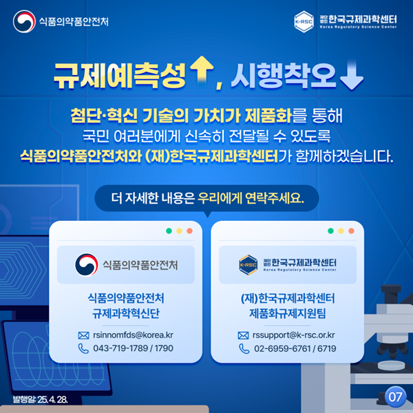 식약처, 28일(월) 게시 △ 원문 보러가기 : 식약처 블로그 > 식약뉴스 의료기기뉴스라인 webmaster@kmdia.or.kr 다른기사 보기 저작권자 © 의료기기뉴스라인 무단전재 및 재배포 금지 당신만 안 본 뉴스 KMDIA, ‘2025 하반기 법규위원회 정기총회’ 성료 KMDIA, ‘2025 보험위원회 정책포럼’ 개최 정보원, ‘의료기기 RA전문가 양성 워크숍’ 개최 NECA, '신의료기술평가 제도 개선 설명회’ 개최 ‘신의료기술평가의 절차와 방법 등에 관한 규정’ 일부개정고시 ‘의료기기 품목 및 품목별 등급에 관한 규정’ 일부개정고시(안) 행정예고 심평원, ‘지출보고서 관리시스템’ 오픈 KMDIA, ‘2025 하반기 법규위원회 정기총회’ 성료 댓글삭제 삭제한 댓글은 다시 복구할 수 없습니다. 그래도 삭제하시겠습니까? 비밀번호 닫기 기사 댓글 0 댓글 접기 댓글 내용입력 비회원 로그인 이름 비밀번호 댓글 내용입력 댓글쓰기 계정을 선택하시면 로그인·계정인증을 통해 댓글을 남기실 수 있습니다. 회원 로그인 비회원 글쓰기 이름 비밀번호 자동등록방지 로그인 옵션 창닫기 주요기사 제이엘케이, ‘약한 지도학습 기반 인공지능 기술’ 특허 등록 복지부, ‘AX 시대’ 의료데이터 활용 전략 모색 올해 3분기 바이오헬스 종사자 113.1만 명, 전년 대비 4.6% 증가 프로메디우스-지멘스헬시니어스차이나, AI 연동 계약 체결 ‘의료기기 생산 및 수출·수입·수리실적 보고에 관한 규정’ 일부 개정고시 알츠하이머 협회, 경구용 세마글루티드 3상 임상시험 결과에 대한 입장 발표