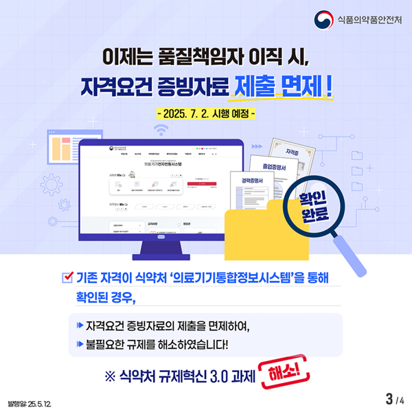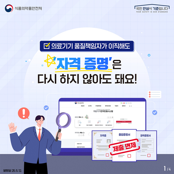 당신만 안 본 뉴스 KMDIA, ‘2025 하반기 법규위원회 정기총회’ 성료 KMDIA, ‘2025 보험위원회 정책포럼’ 개최 정보원, ‘의료기기 RA전문가 양성 워크숍’ 개최 NECA, '신의료기술평가 제도 개선 설명회’ 개최 ‘신의료기술평가의 절차와 방법 등에 관한 규정’ 일부개정고시 ‘의료기기 품목 및 품목별 등급에 관한 규정’ 일부개정고시(안) 행정예고 심평원, ‘지출보고서 관리시스템’ 오픈
