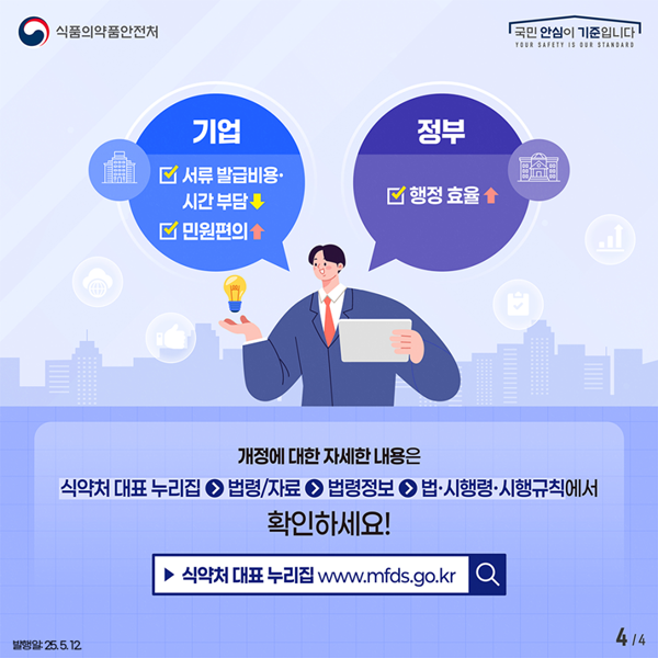식약처, 지난 12일(월) 게시 △ 원문 보러가기 : 식약처 블로그 > 식약메이트 의료기기뉴스라인 webmaster@kmdia.or.kr 다른기사 보기 저작권자 © 의료기기뉴스라인 무단전재 및 재배포 금지 당신만 안 본 뉴스 KMDIA, ‘2025 하반기 법규위원회 정기총회’ 성료 KMDIA, ‘2025 보험위원회 정책포럼’ 개최 정보원, ‘의료기기 RA전문가 양성 워크숍’ 개최 NECA, '신의료기술평가 제도 개선 설명회’ 개최 ‘신의료기술평가의 절차와 방법 등에 관한 규정’ 일부개정고시 ‘의료기기 품목 및 품목별 등급에 관한 규정’ 일부개정고시(안) 행정예고 심평원, ‘지출보고서 관리시스템’ 오픈 KMDIA, ‘2025 하반기 법규위원회 정기총회’ 성료 댓글삭제 삭제한 댓글은 다시 복구할 수 없습니다. 그래도 삭제하시겠습니까? 비밀번호 닫기 기사 댓글 0 댓글 접기 댓글 내용입력 비회원 로그인 이름 비밀번호 댓글 내용입력 댓글쓰기 계정을 선택하시면 로그인·계정인증을 통해 댓글을 남기실 수 있습니다. 회원 로그인 비회원 글쓰기 이름 비밀번호 자동등록방지 로그인 옵션 창닫기 주요기사 제이엘케이, ‘약한 지도학습 기반 인공지능 기술’ 특허 등록 복지부, ‘AX 시대’ 의료데이터 활용 전략 모색 올해 3분기 바이오헬스 종사자 113.1만 명, 전년 대비 4.6% 증가 프로메디우스-지멘스헬시니어스차이나, AI 연동 계약 체결 ‘의료기기 생산 및 수출·수입·수리실적 보고에 관한 규정’ 일부 개정고시 알츠하이머 협회, 경구용 세마글루티드 3상 임상시험 결과에 대한 입장 발표