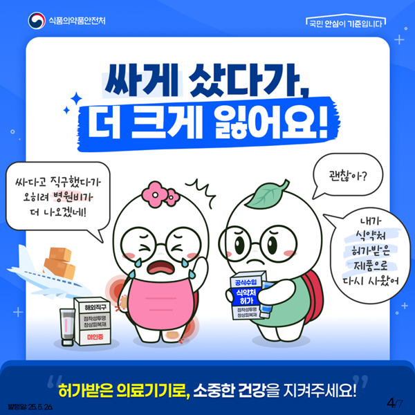 식약처, 지난 26일(월) 게시 △원문 보러가기 : 식약처 블로그 > 식약메이트 의료기기뉴스라인 webmaster@kmdia.or.kr 다른기사 보기 저작권자 © 의료기기뉴스라인 무단전재 및 재배포 금지 당신만 안 본 뉴스 KMDIA, ‘2025 하반기 법규위원회 정기총회’ 성료 KMDIA, ‘2025 보험위원회 정책포럼’ 개최 정보원, ‘의료기기 RA전문가 양성 워크숍’ 개최 NECA, '신의료기술평가 제도 개선 설명회’ 개최 ‘신의료기술평가의 절차와 방법 등에 관한 규정’ 일부개정고시 ‘의료기기 품목 및 품목별 등급에 관한 규정’ 일부개정고시(안) 행정예고 심평원, ‘지출보고서 관리시스템’ 오픈 KMDIA, ‘2025 하반기 법규위원회 정기총회’ 성료 댓글삭제 삭제한 댓글은 다시 복구할 수 없습니다. 그래도 삭제하시겠습니까? 비밀번호 닫기 기사 댓글 0 댓글 접기 댓글 내용입력 비회원 로그인 이름 비밀번호 댓글 내용입력 댓글쓰기 계정을 선택하시면 로그인·계정인증을 통해 댓글을 남기실 수 있습니다. 회원 로그인 비회원 글쓰기 이름 비밀번호 자동등록방지 로그인 옵션 창닫기 주요기사 제이엘케이, ‘약한 지도학습 기반 인공지능 기술’ 특허 등록 복지부, ‘AX 시대’ 의료데이터 활용 전략 모색 올해 3분기 바이오헬스 종사자 113.1만 명, 전년 대비 4.6% 증가 프로메디우스-지멘스헬시니어스차이나, AI 연동 계약 체결 ‘의료기기 생산 및 수출·수입·수리실적 보고에 관한 규정’ 일부 개정고시 알츠하이머 협회, 경구용 세마글루티드 3상 임상시험 결과에 대한 입장 발표