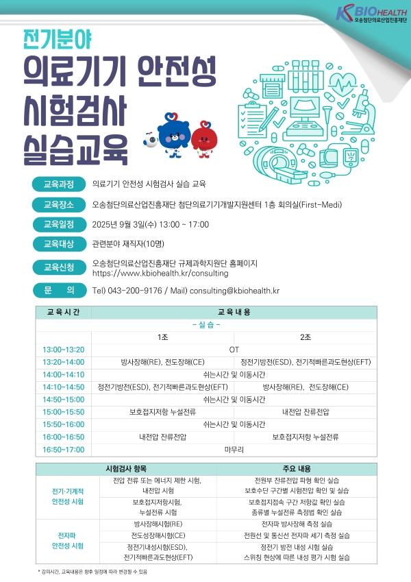 - 의료기기 전기분야 시험검사 실습교육 : 2025.09.03(수) 13:00~17:00