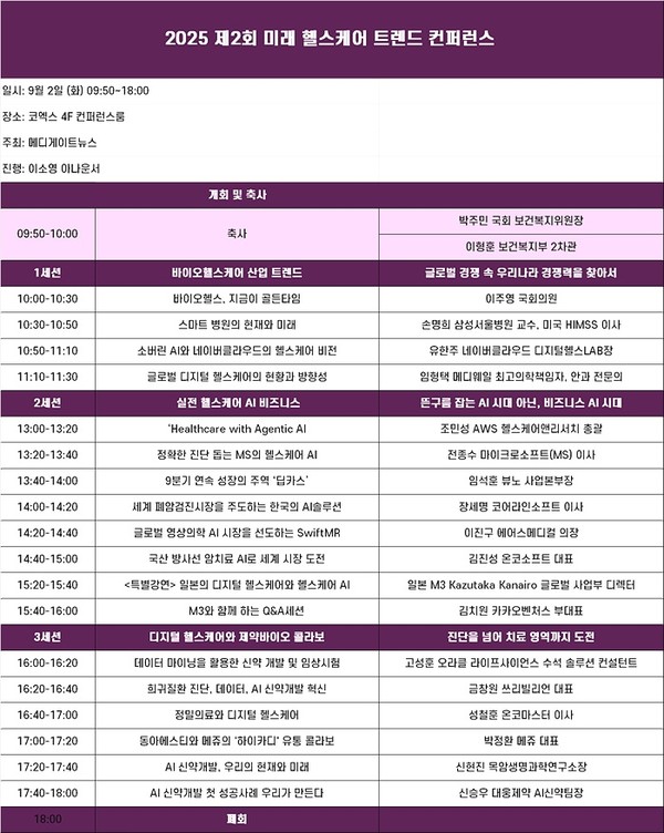메디케이트뉴스에서는 새 정부가 출범한 동시에 전공의, 의대생들의 복귀 시점 이후 미래 헬스케어 변화의 흐름을 준비하고 헬스케어 산업을 강조하기 위해 ‘2025 제2회 미래 헬스케어 트렌드 컨퍼런스’를 개최합니다. 관계자분들의 많은 관심과 참여 바랍니다.
