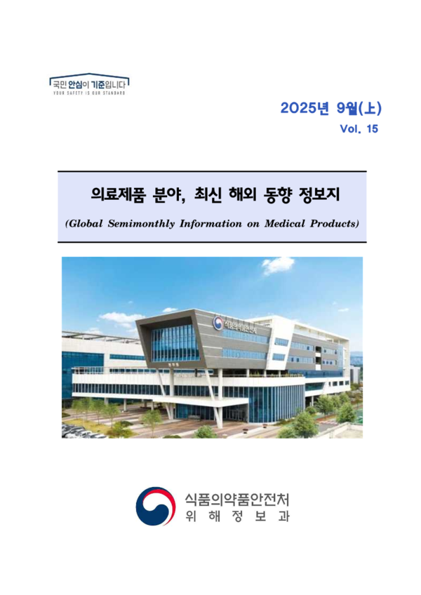 관련하여 2025년 9월(상) 의료제품 분야, 최신 해외 동향 정보지를 배포하였으니 업무에 참고하시기 바랍니다.