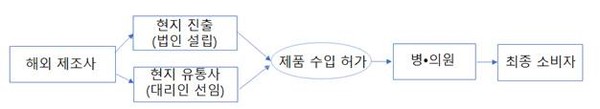글로벌 기업의 경우 현지 법인설립을 통한 직접 진출을 진행하기도 하나, 현지 사업체 등록과 의료기기 취급면허 취득을 위한 초기 진출 비용과 시간 소요가 많은 바 대리점을 통한 현지 유통이 중소 기업들에는 좀 더 보편적인 방안이다.