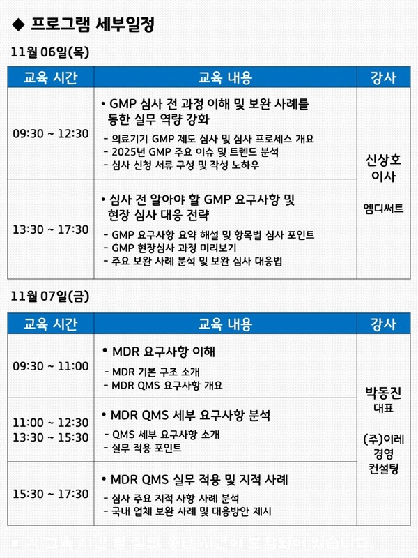 - GMP 실무 : 2025. 11. 6.(목) 09:30~17:30