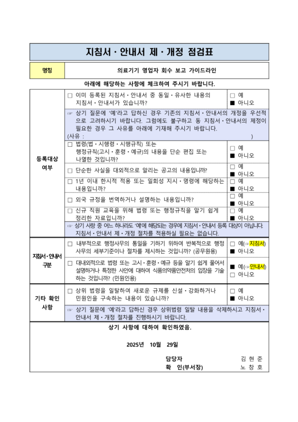 식약처 의료기기안전평가과, 지난달 31일 개정 안내