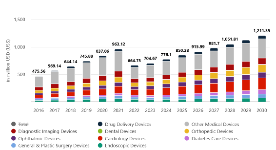 <2016~2030년 우크라이나 의료기기 시장 규모>